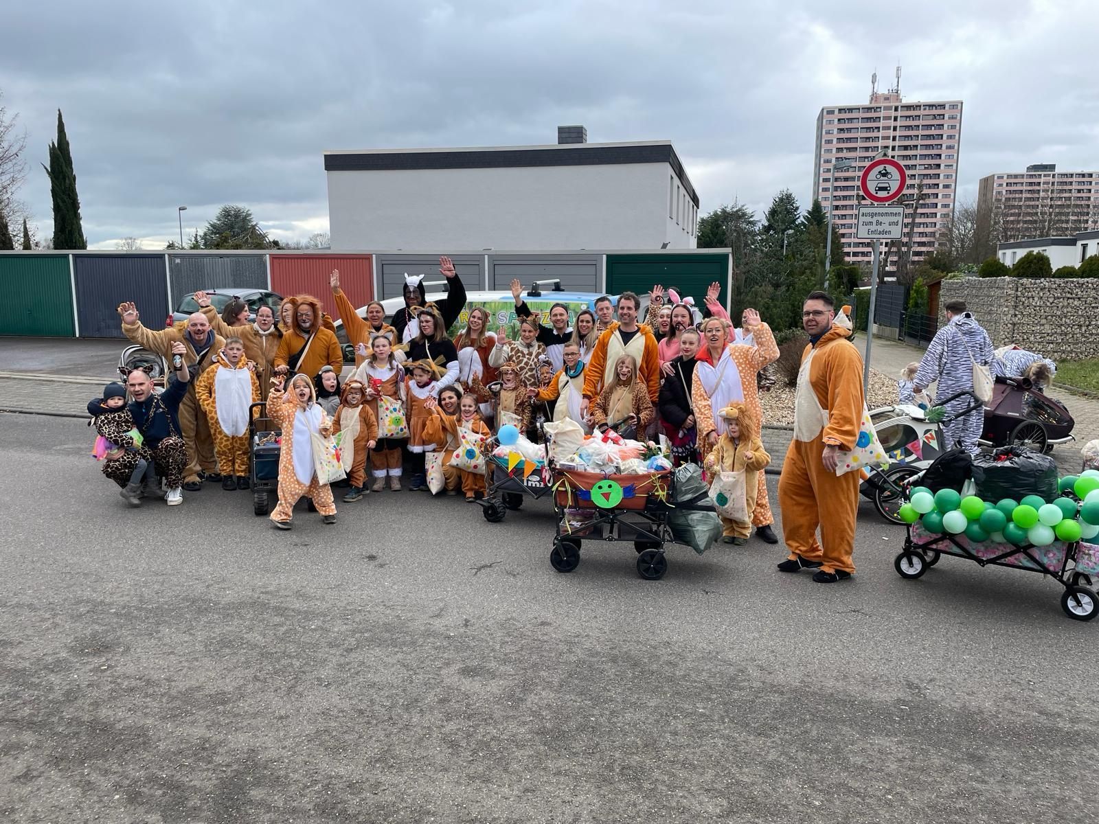 Die Spatzen bereiten sich auf den Karnevalszug vor.